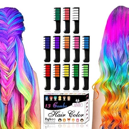 Byhoo Hair Chalk Set 13 Colors Temporary Hair Color Glitter Hair Chalk Combs For Girls Kids Washable Color Hair Dye Comb Birthday Carnival Gift Amazon De Beauty